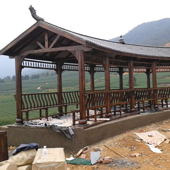 戶外防腐木長廊也可以稱為防腐木景觀長廊,采用實木打造而成,頂部用竹節瓦制作而成,當然也可以用樹脂瓦、瀝青瓦、小青瓦,上門安裝,快速發貨,提供設計、生產、施工安裝一條龍服務。